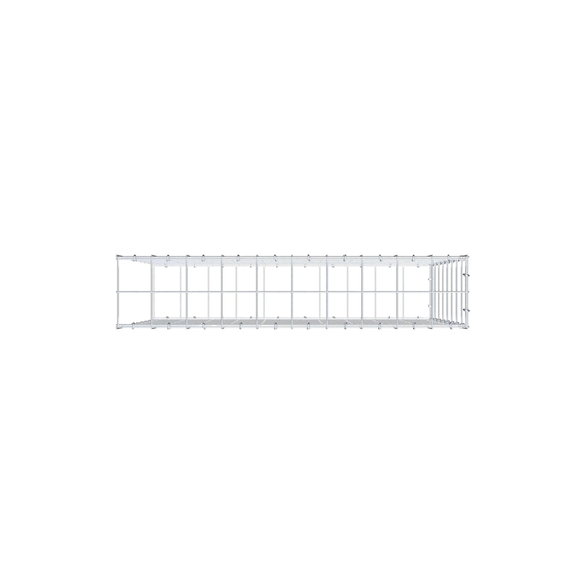 • Hinweis: kein eigenes Stirngitter und kein Verschluss auf dieser Seite – der Anschluss erfolgt über den Verschluss der ersten Gabione.