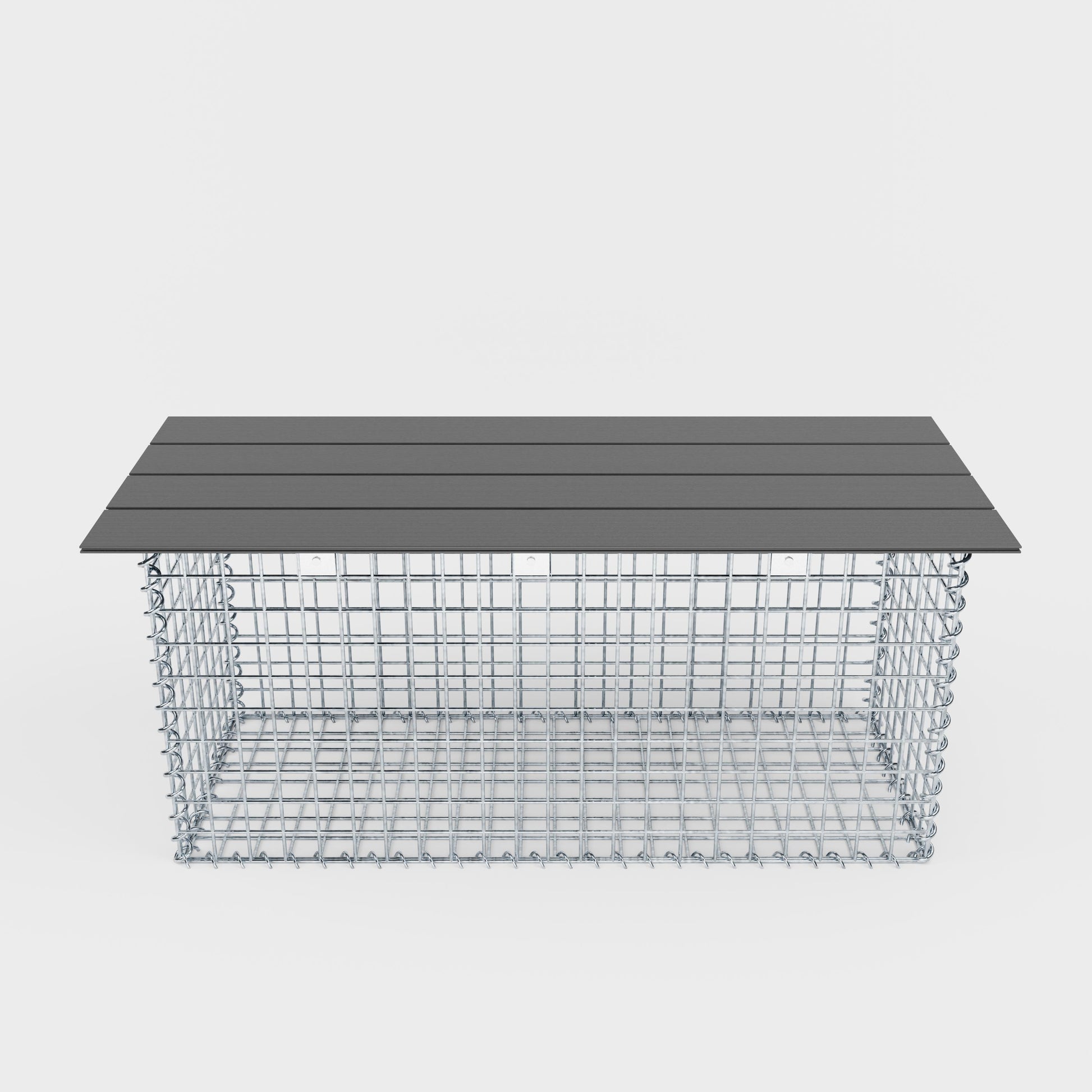 This high-quality spiral gabion bench combines modern design with durable functionality and is the perfect seating option for gardens, terraces or public areas. Thanks to the sturdy gabion construction made of galvanized wire mesh and a comfortable recycled seat in anthracite, the bench impresses both visually and with its high load-bearing capacity.
