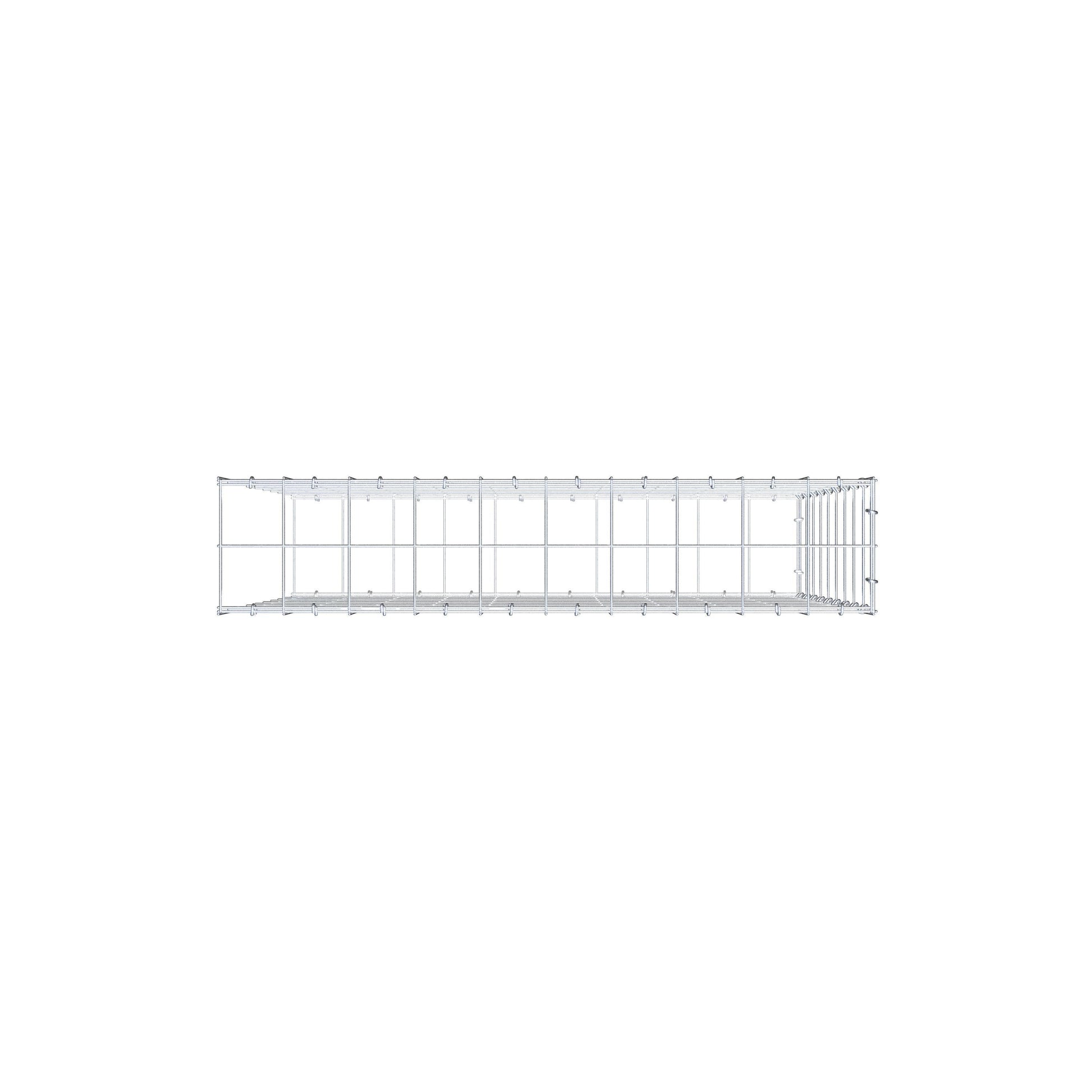 • Remarque : pas de grille frontale propre ni de fermeture de ce côté - le raccordement se fait par la fermeture du premier gabion.