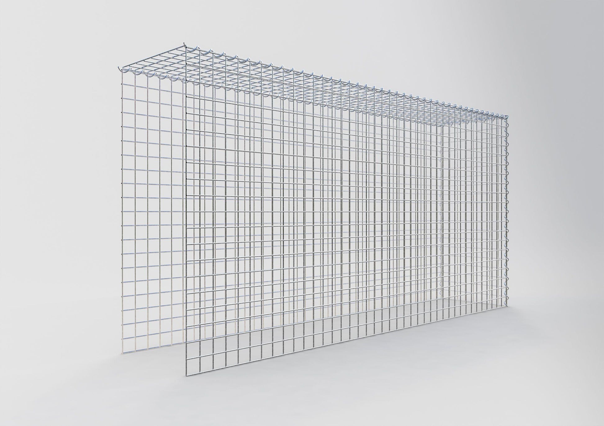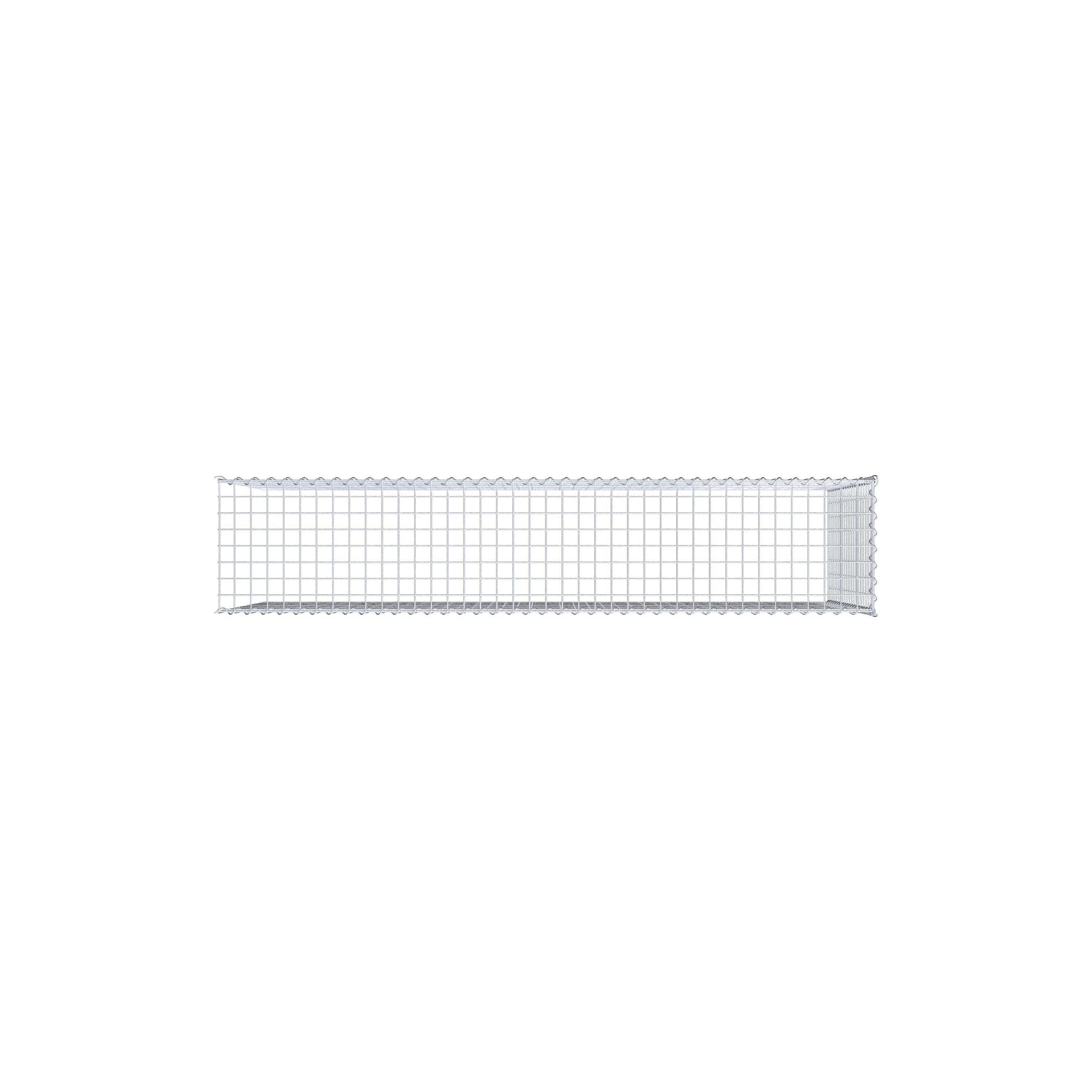 • Remarque : pas de propre grille de fond ni de grille frontale - la liaison se fait par la grille du couvercle et la fermeture du gabion inférieur ainsi que par la fermeture du gabion latéral.