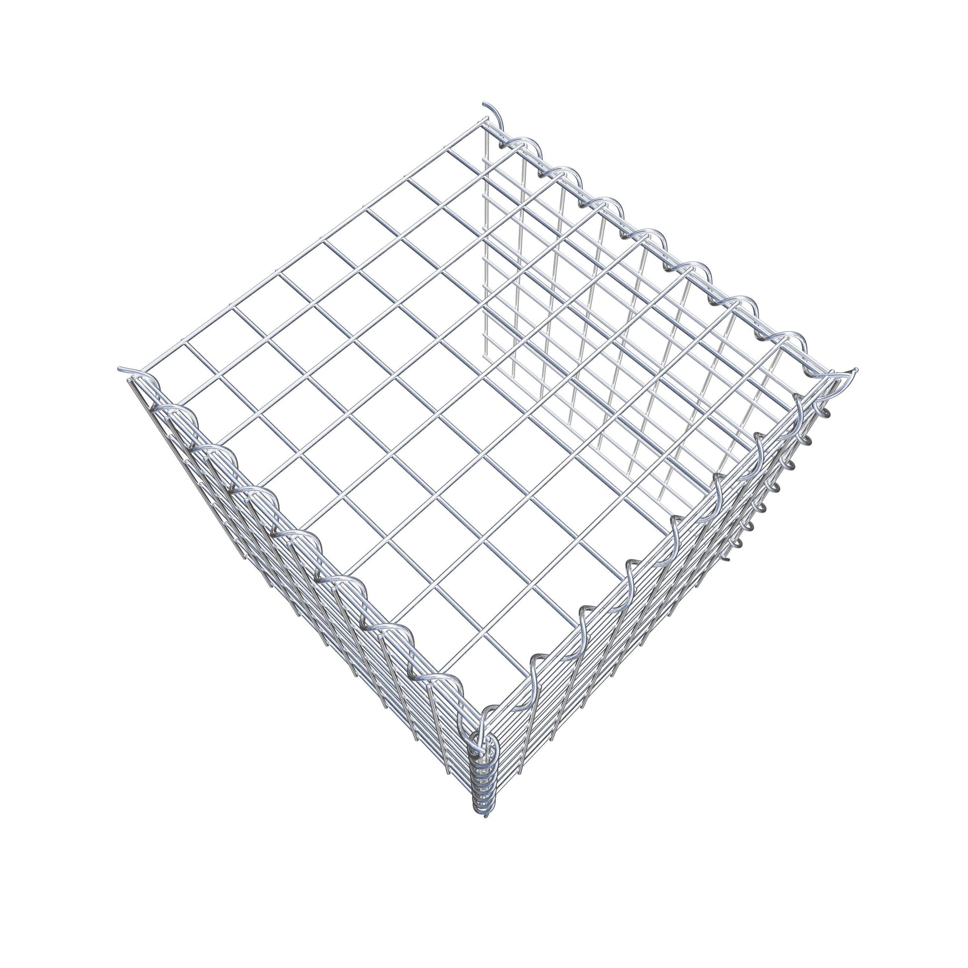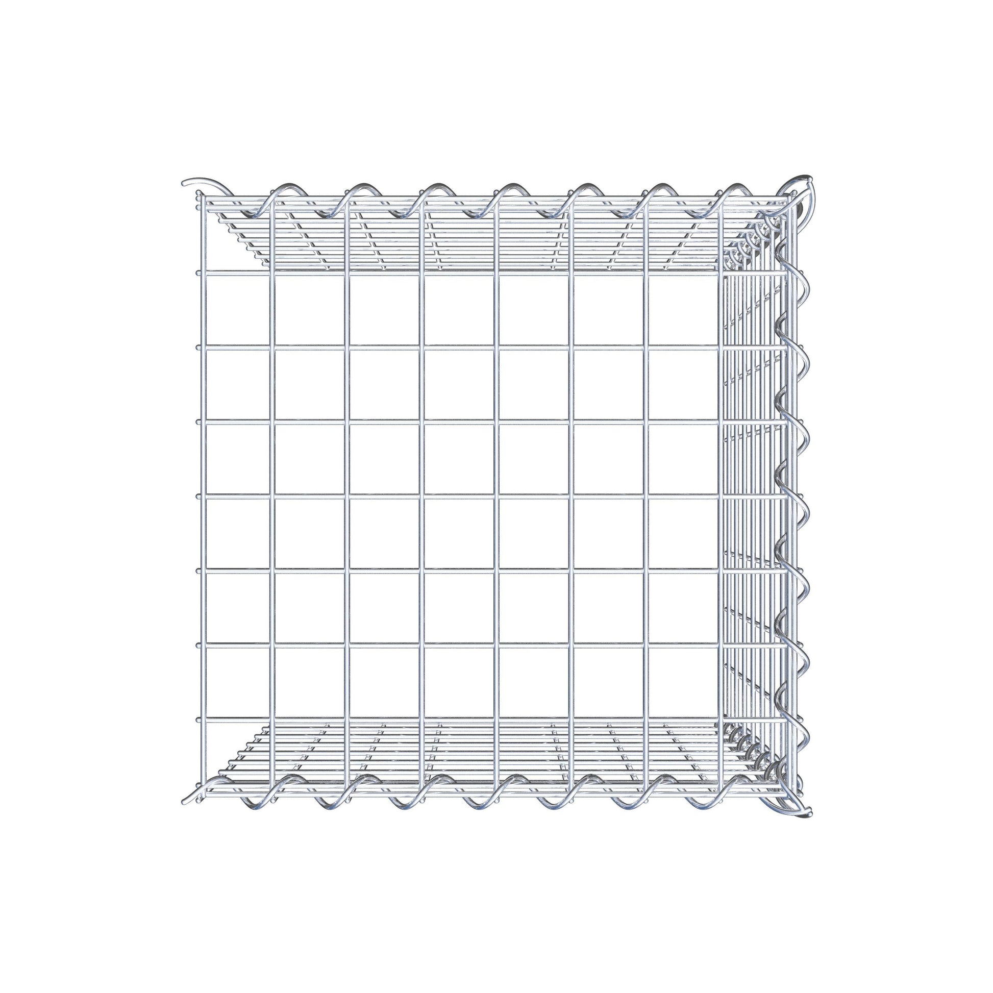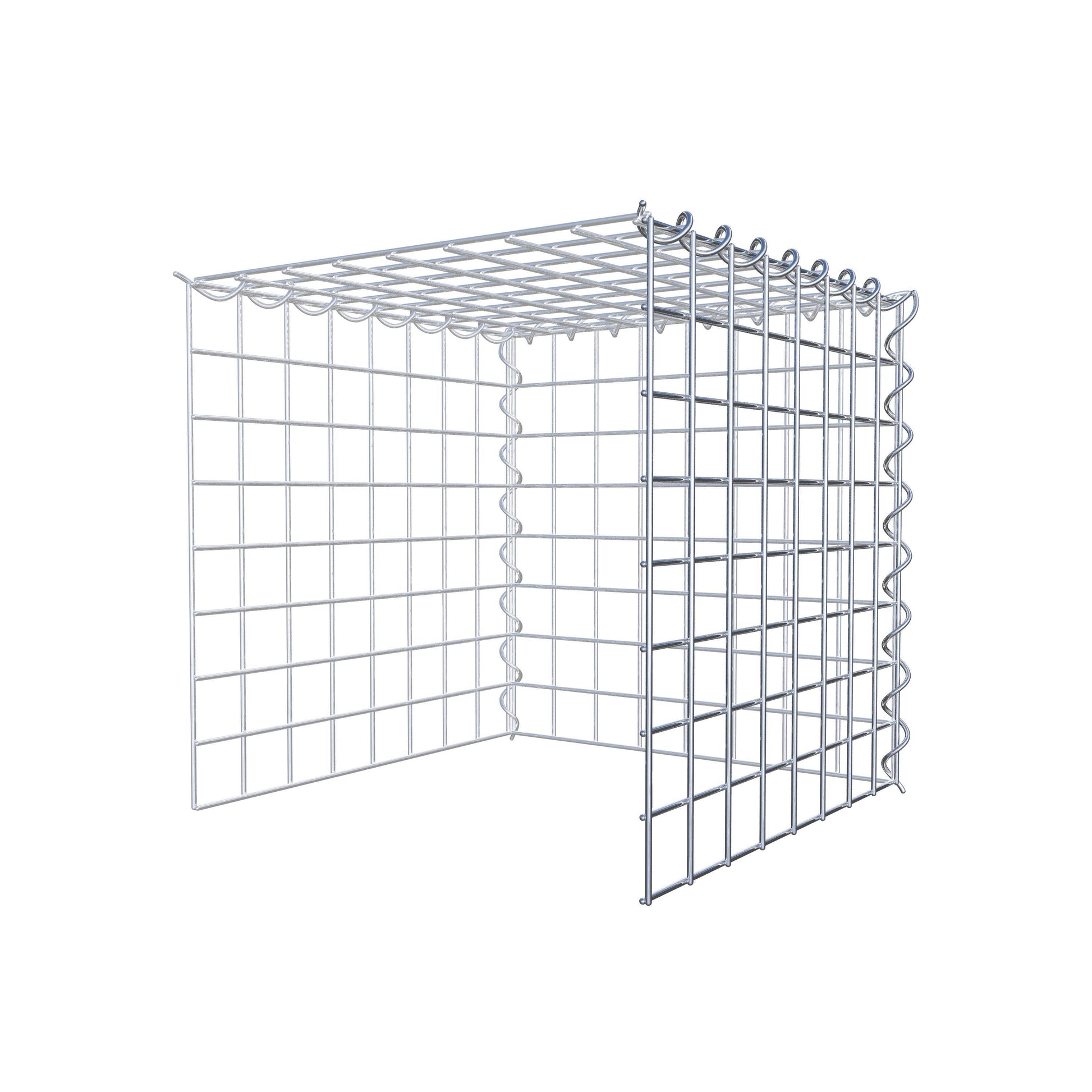 - Remarque : pas de propre grille de fond ni de grille frontale - la liaison se fait par la grille du couvercle et la fermeture du gabion inférieur ainsi que par la fermeture du gabion latéral.