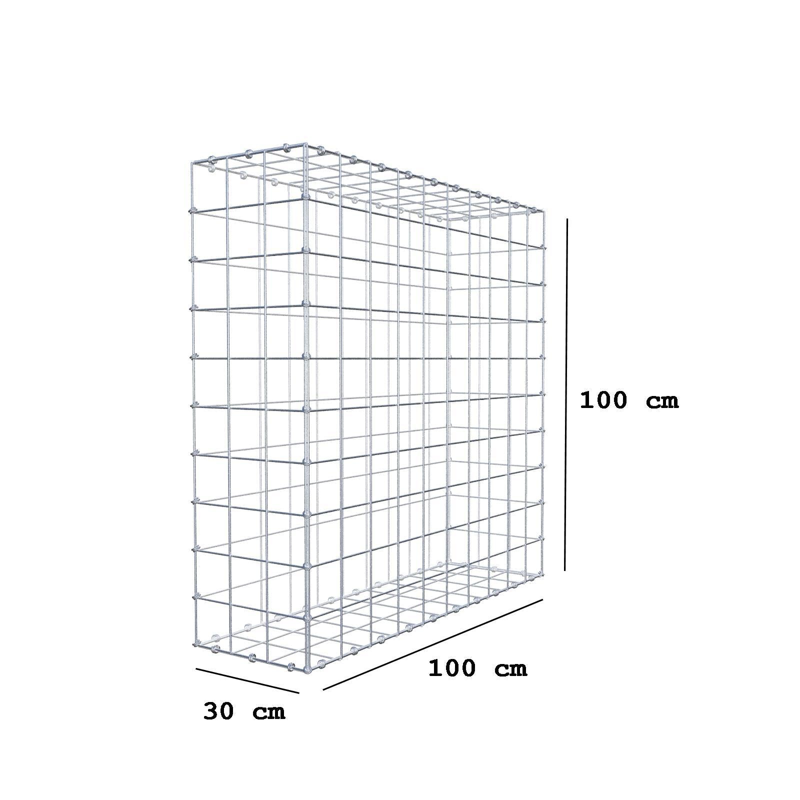 Gabion 100 cm x 100 cm x 30 cm (L x H x D), maskestørrelse 10 x 10 cm, spiralring