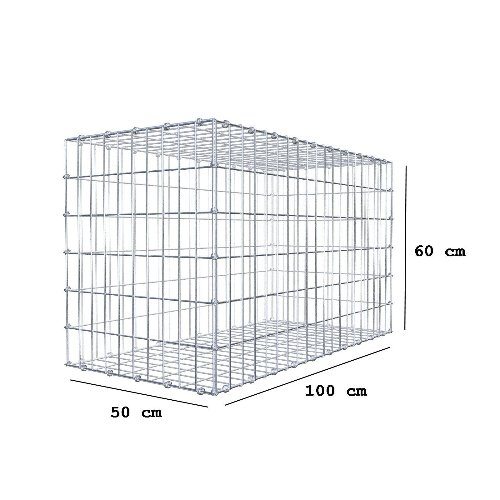 Gabion 100 cm x 60 cm x 50 cm (L x H x D), maskestørrelse 5 x 10 cm, spiralring