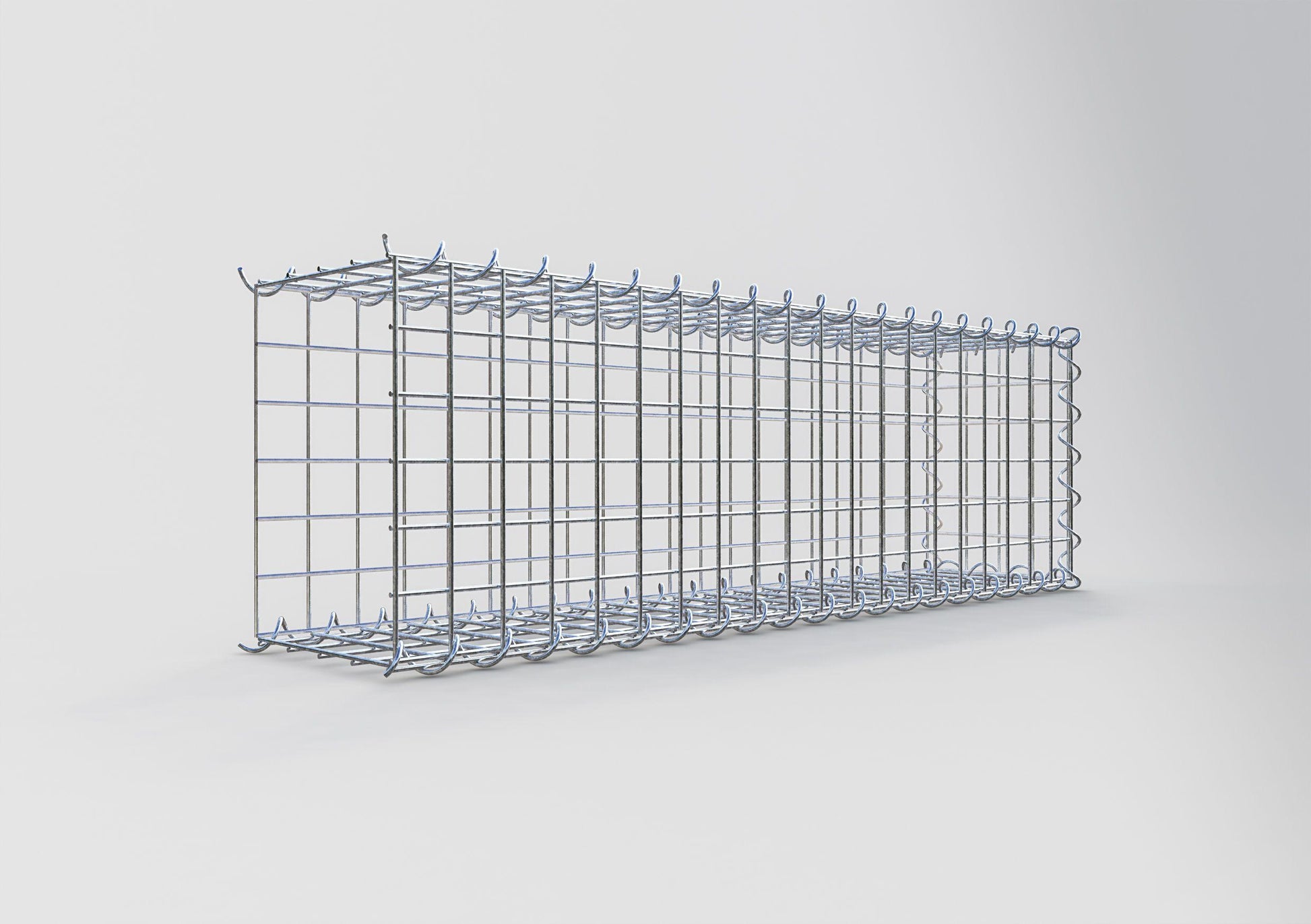 Este gabião não tem grade frontal. Isso permite que seu gabião cresça em comprimento. Observe que o