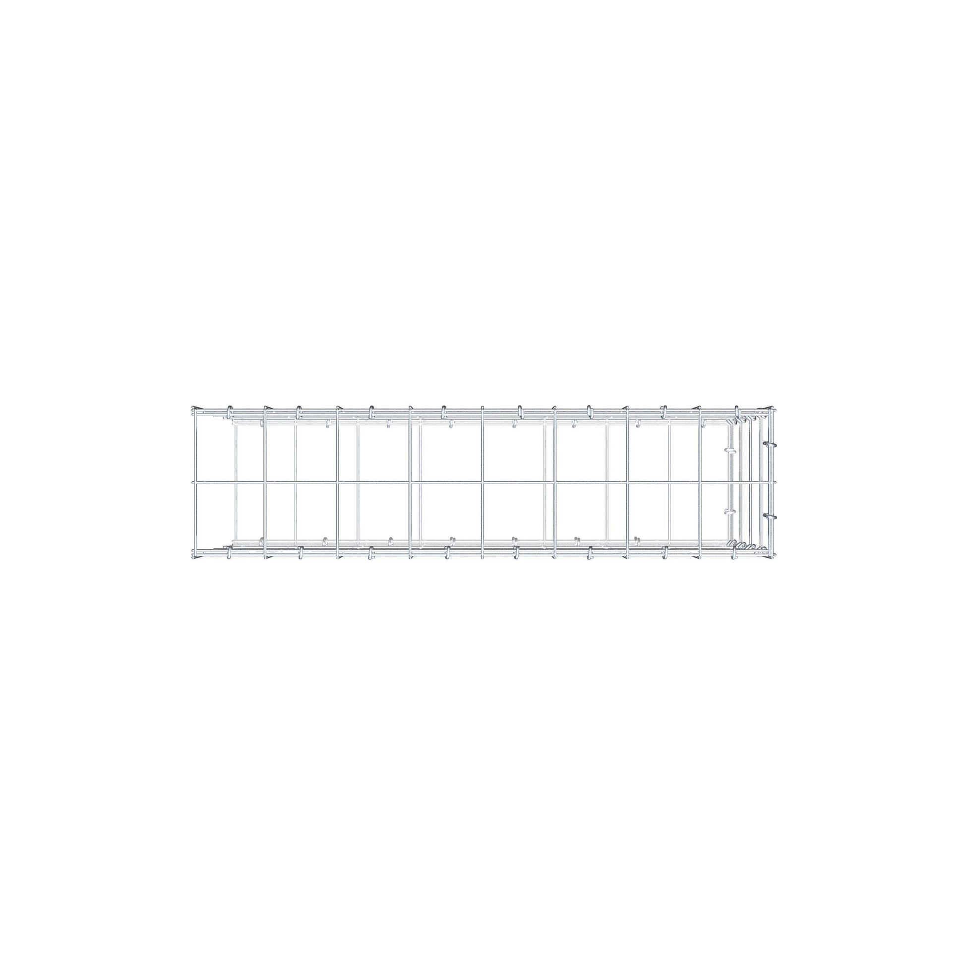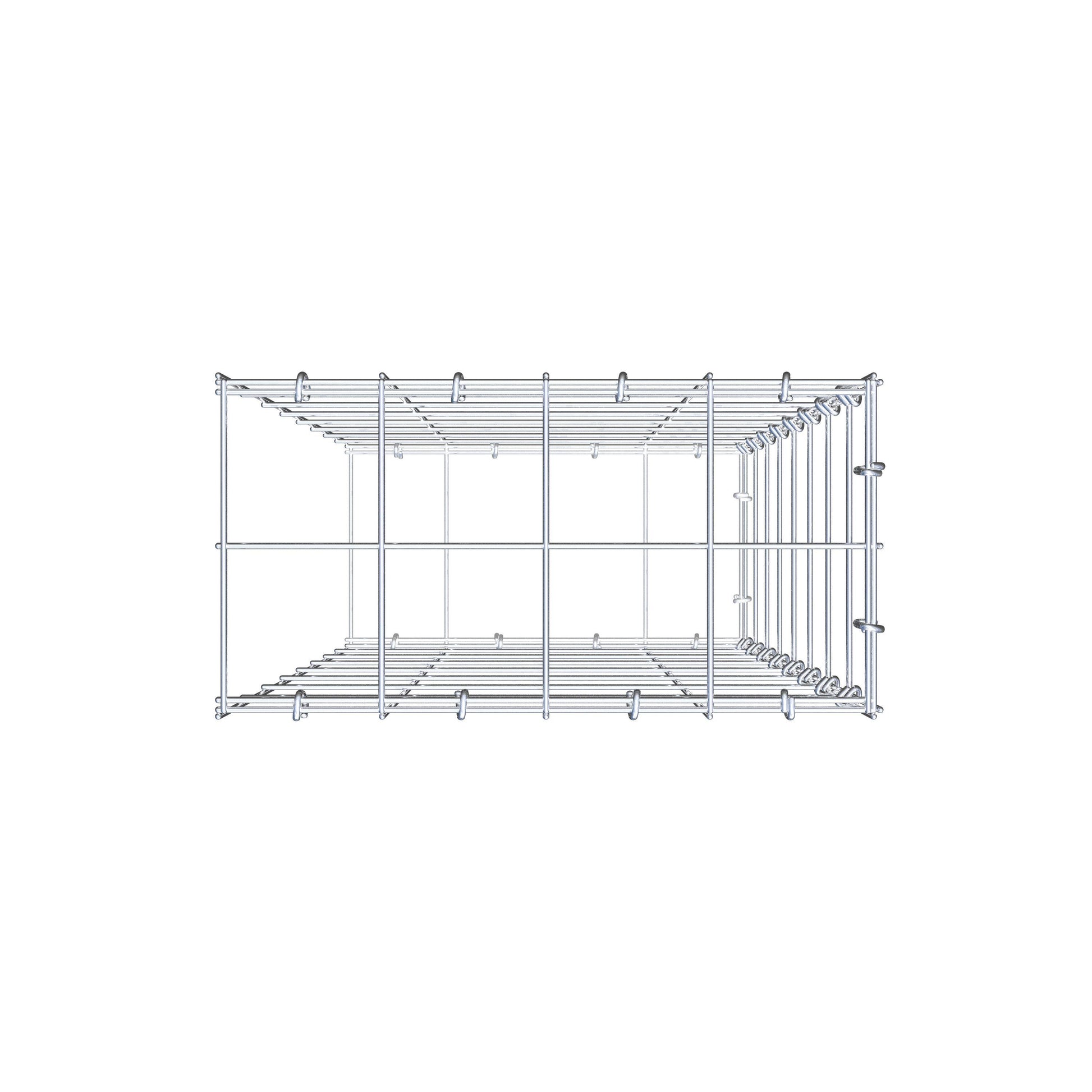 Este gabião não tem grade frontal. Isso permite que seu gabião cresça em comprimento.