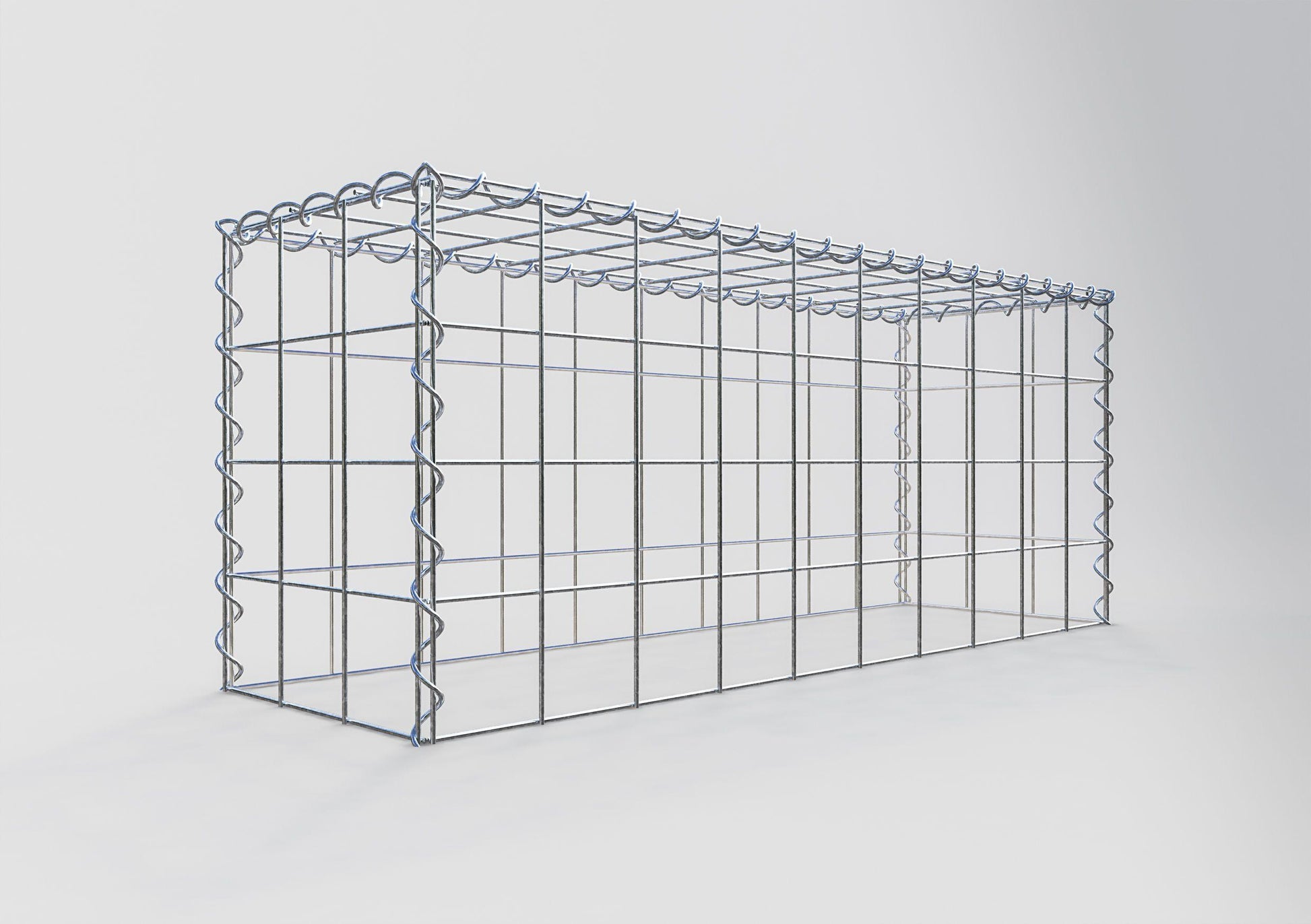 Espirais são a maneira mais fácil de construir um gabião a partir de nossa malha. A montagem é rápida e fácil;