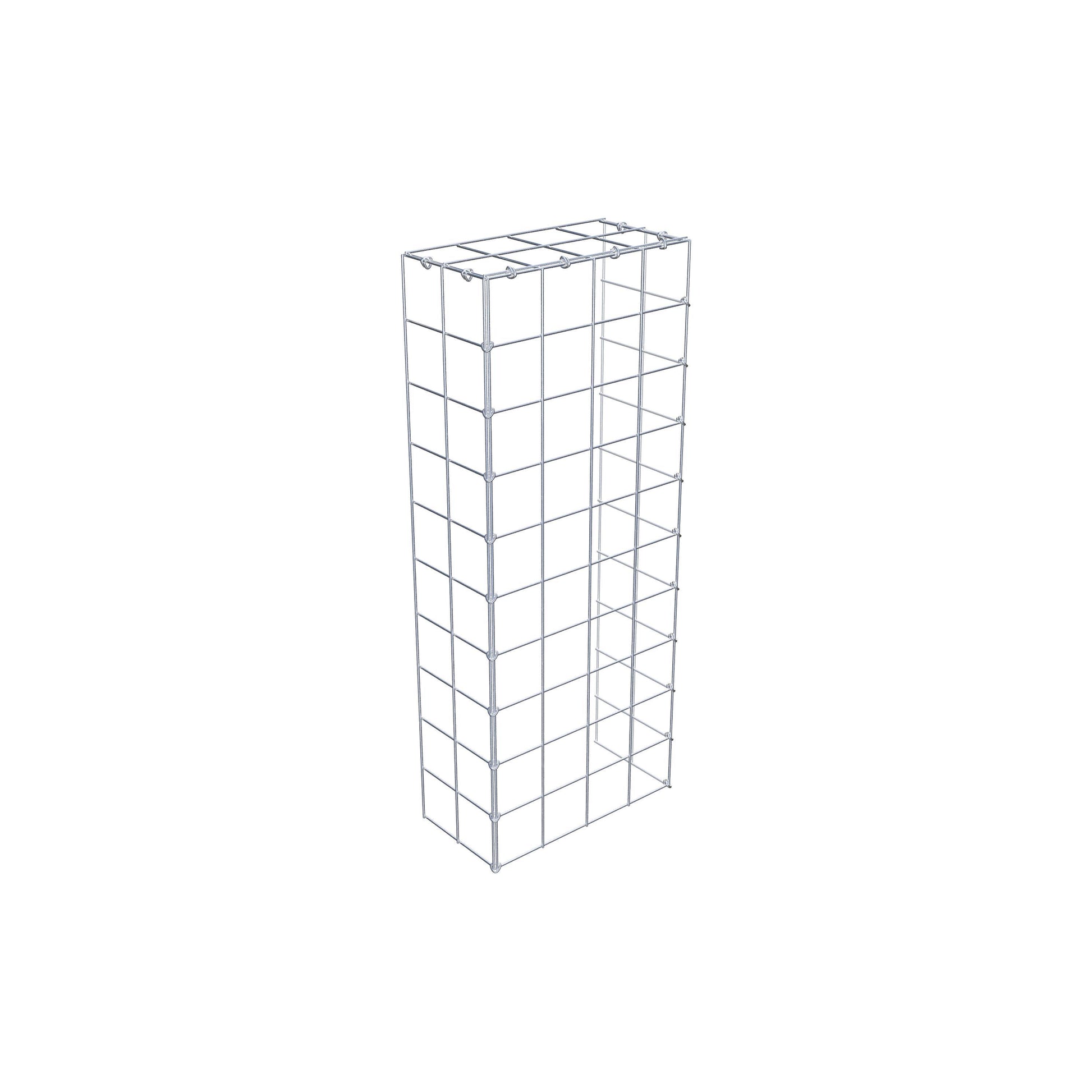 O gabião anexado tem a mesma profundidade que os gabiões ao lado e abaixo dele.