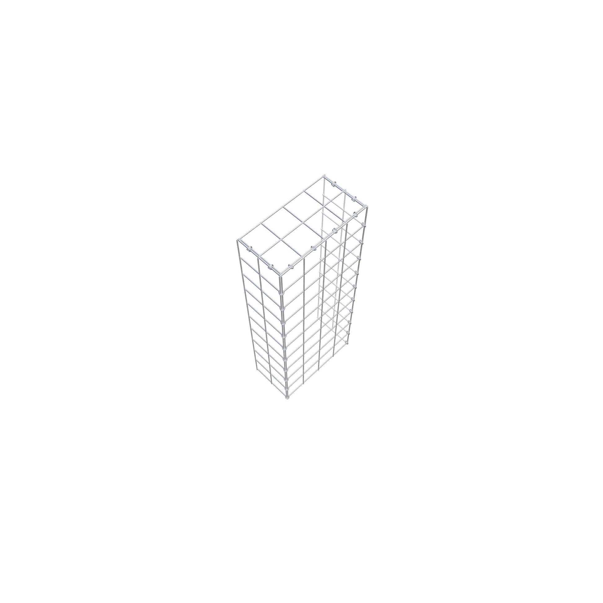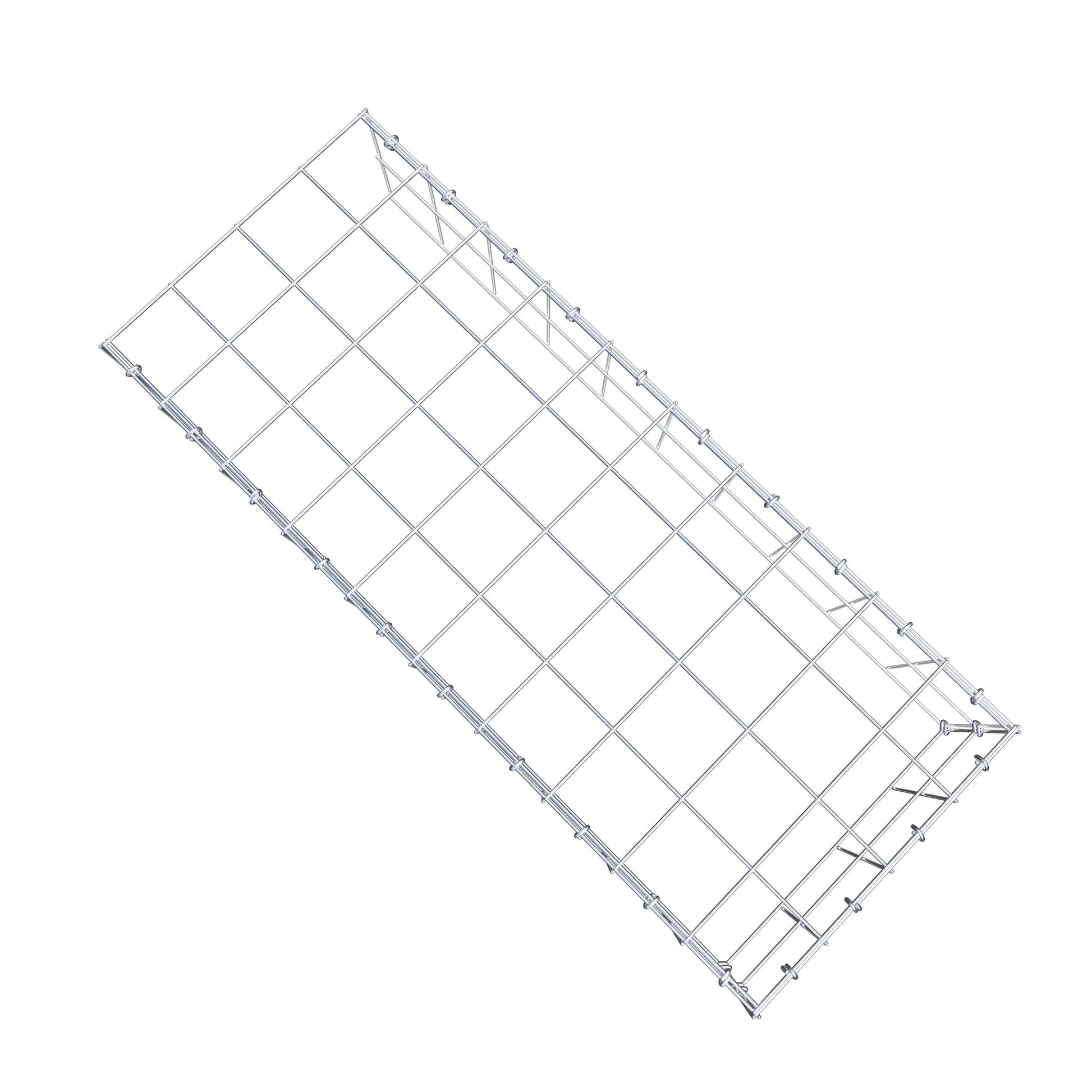 Este gabião não tem grade frontal e inferior. Isso permite que seu gabião cresça tanto em comprimento quanto em altura. Observe que o