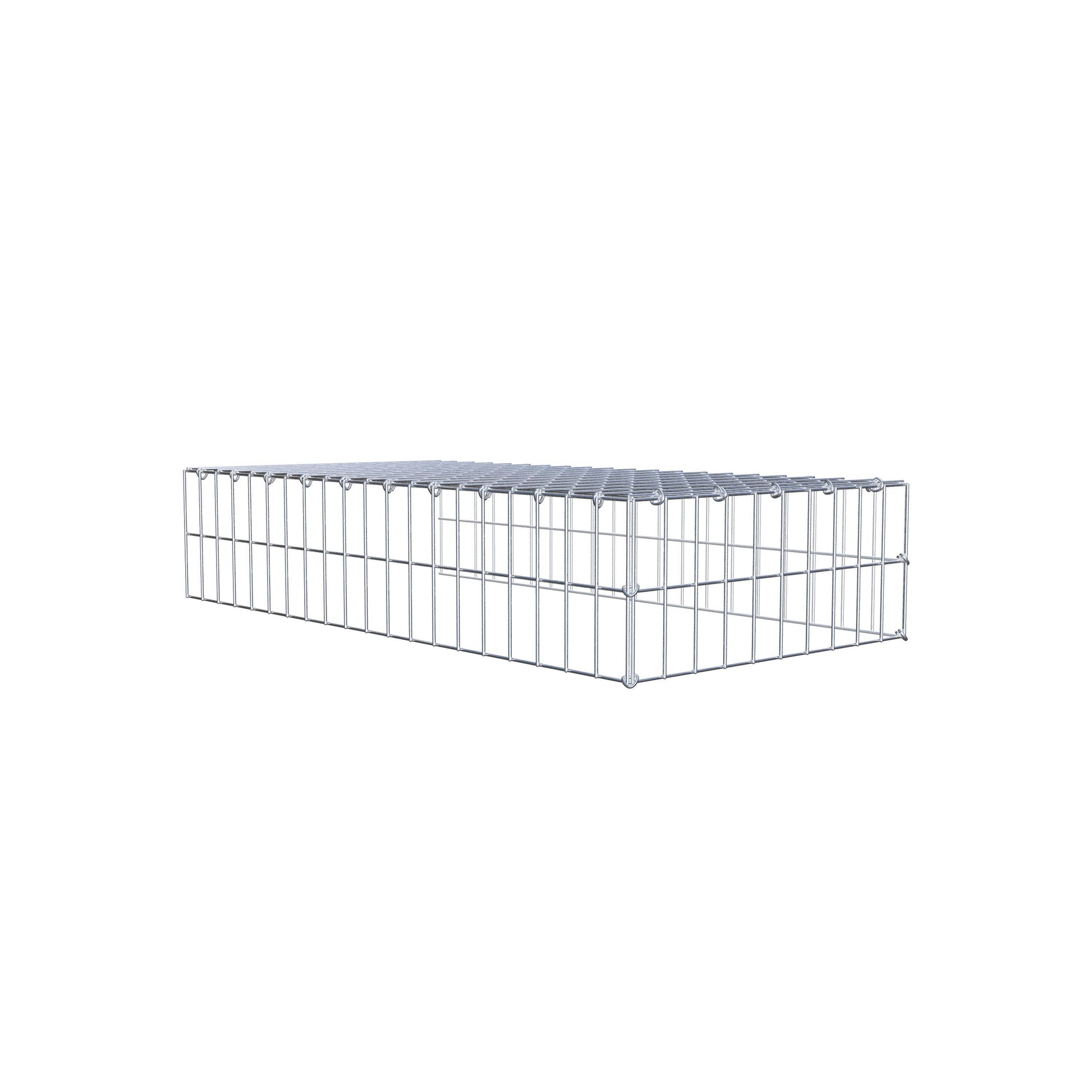 Este gabião não tem grade frontal e inferior. Isso permite que seu gabião cresça tanto em comprimento quanto em altura.