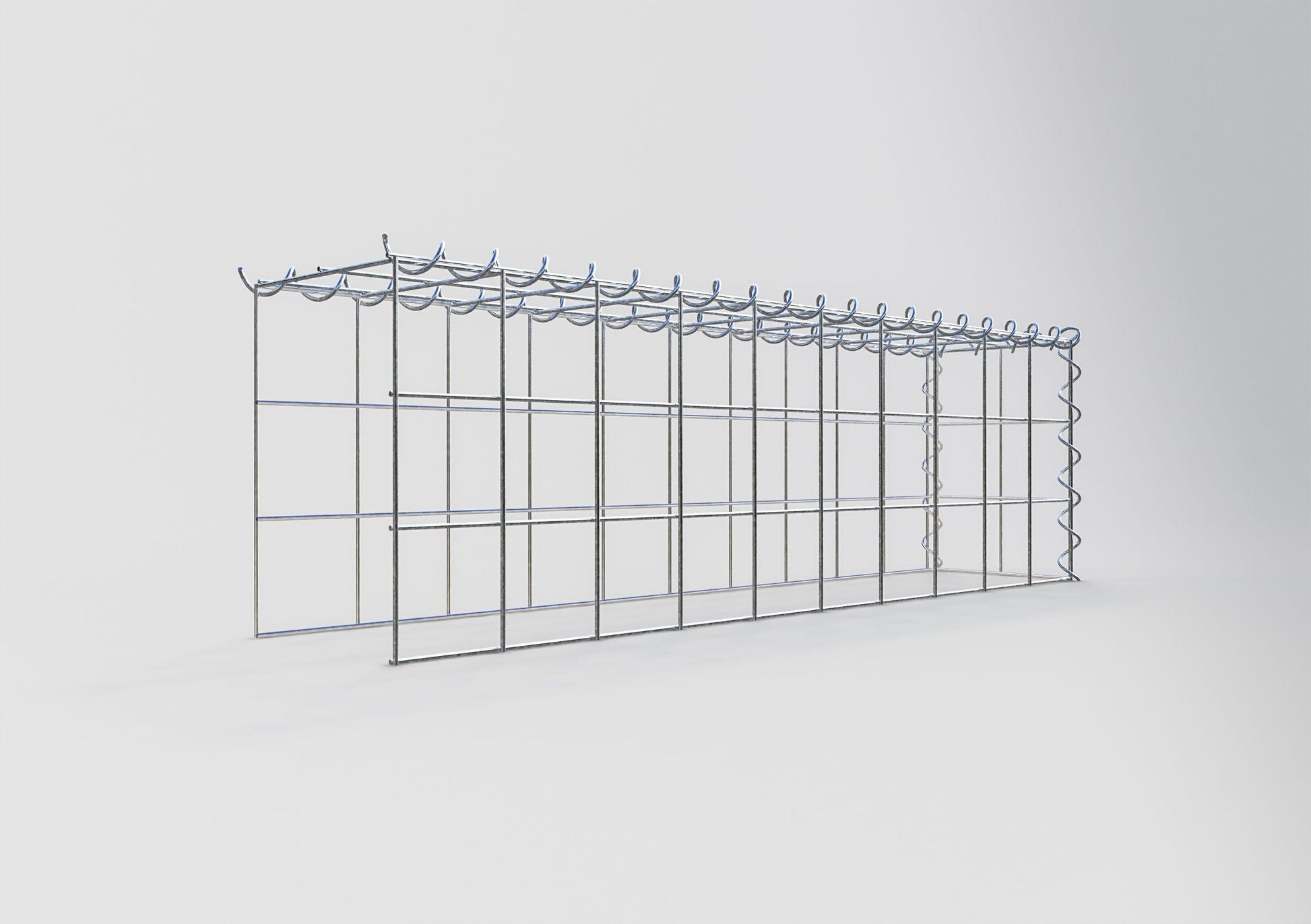 Espirais são a maneira mais fácil de construir um gabião a partir de nossa malha. A montagem é rápida e fácil;