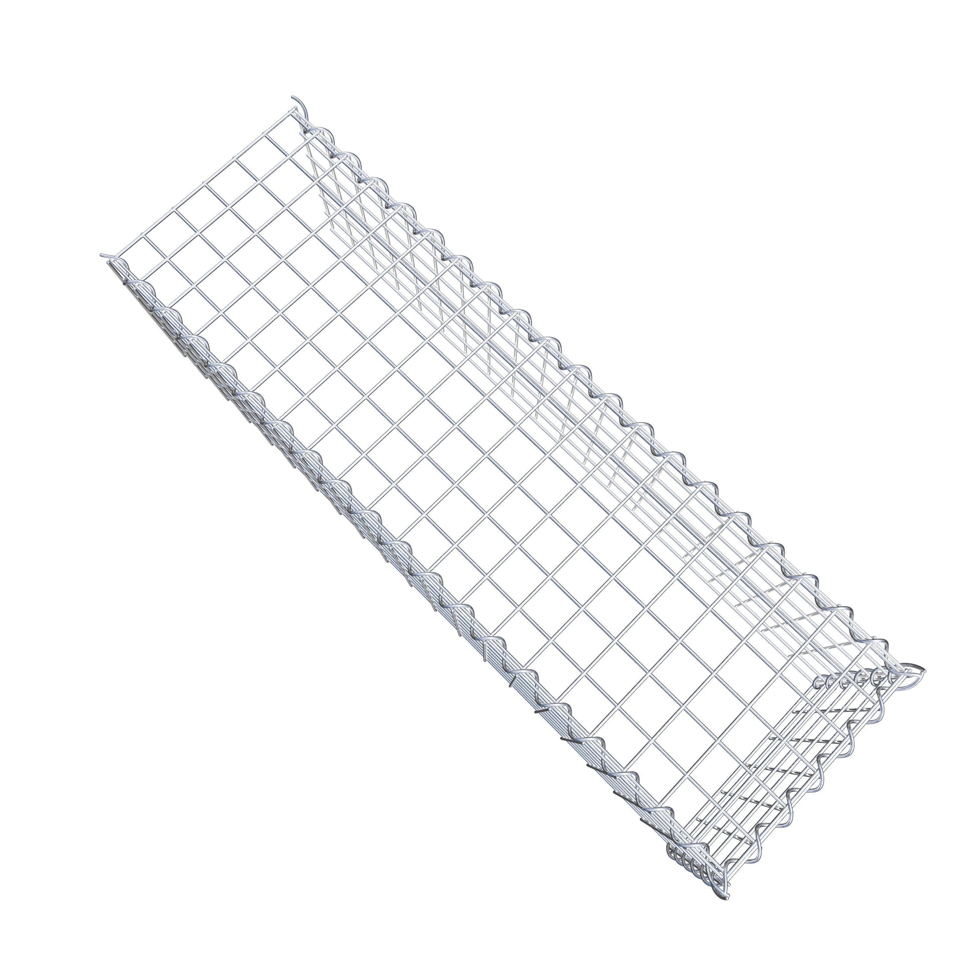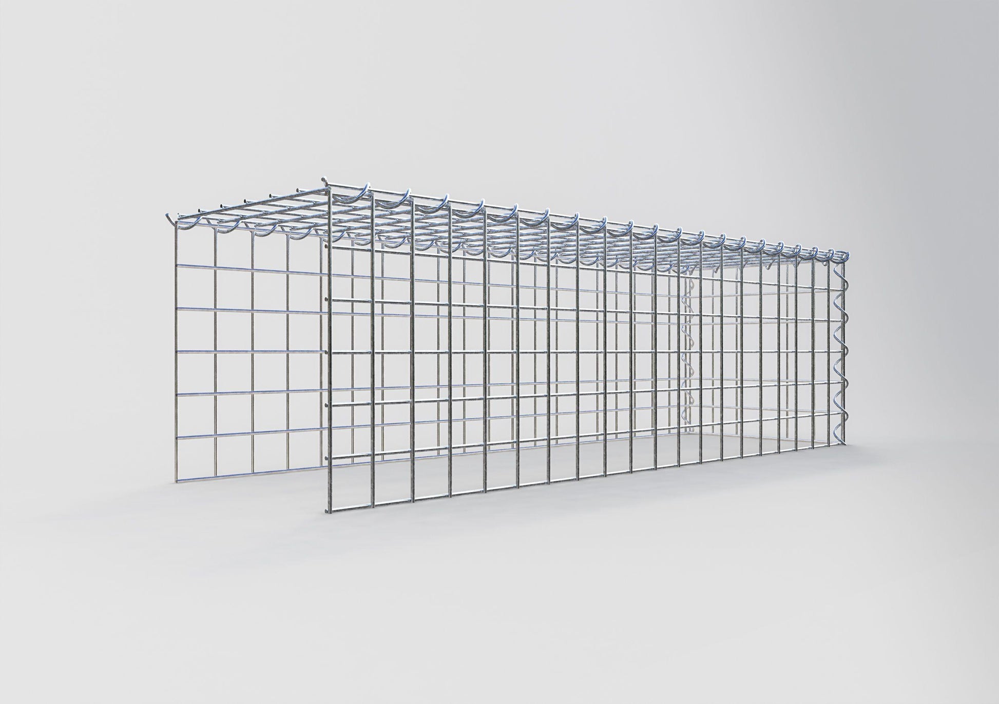 Este gabião não tem grade frontal e inferior. Isso permite que seu gabião cresça tanto em comprimento quanto em altura. Observe que o