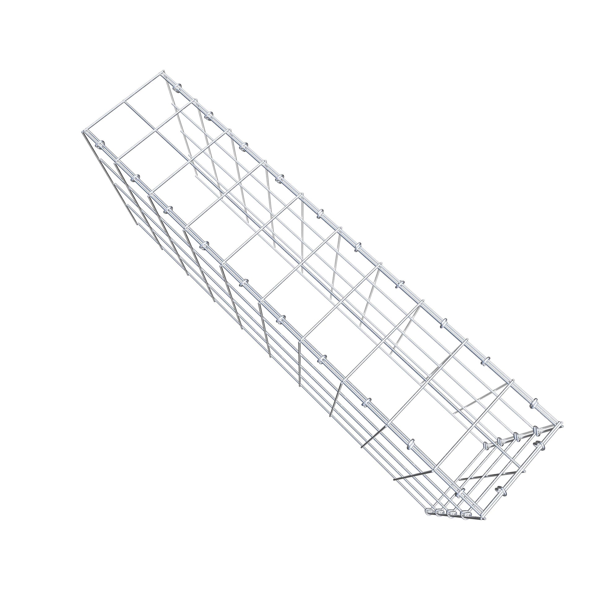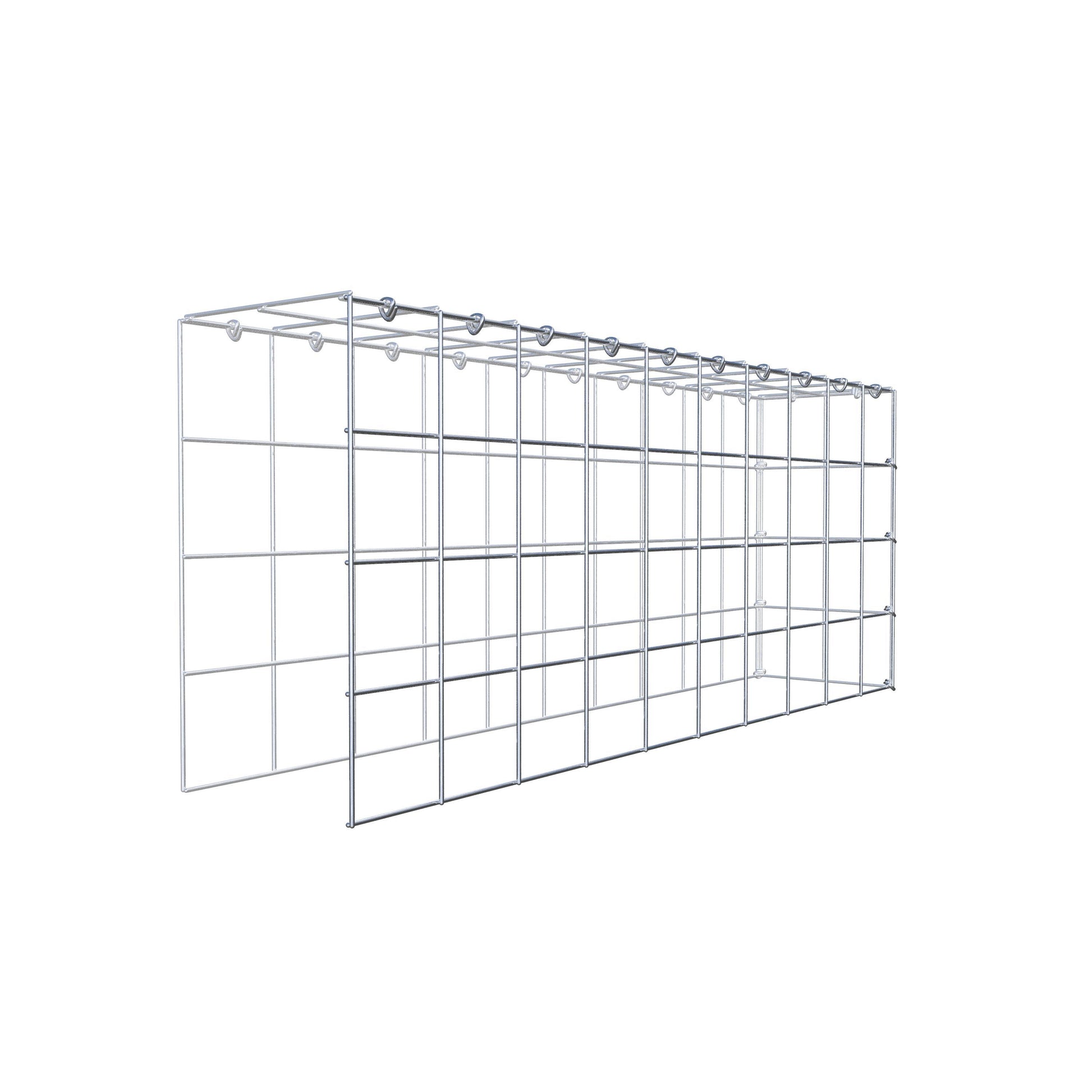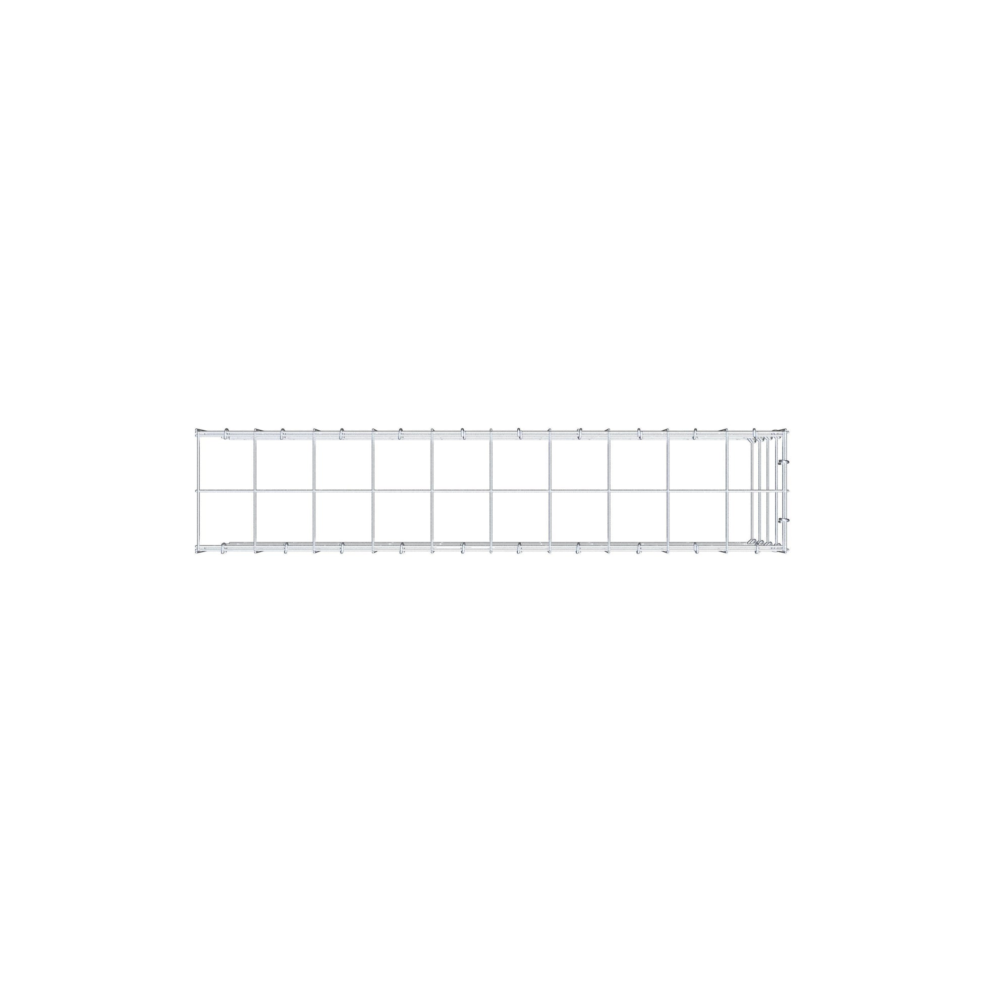 Este gabião não tem grade frontal e inferior. Isso permite que seu gabião cresça tanto em comprimento quanto em altura. Observe que o