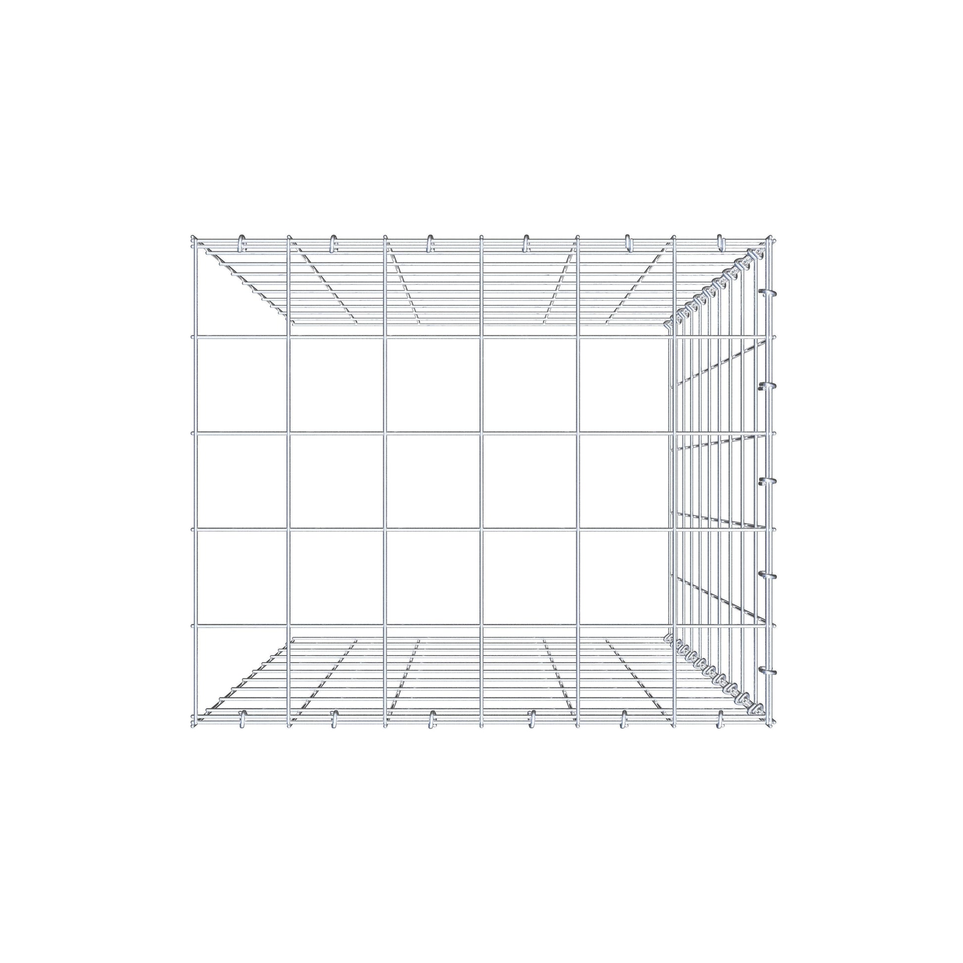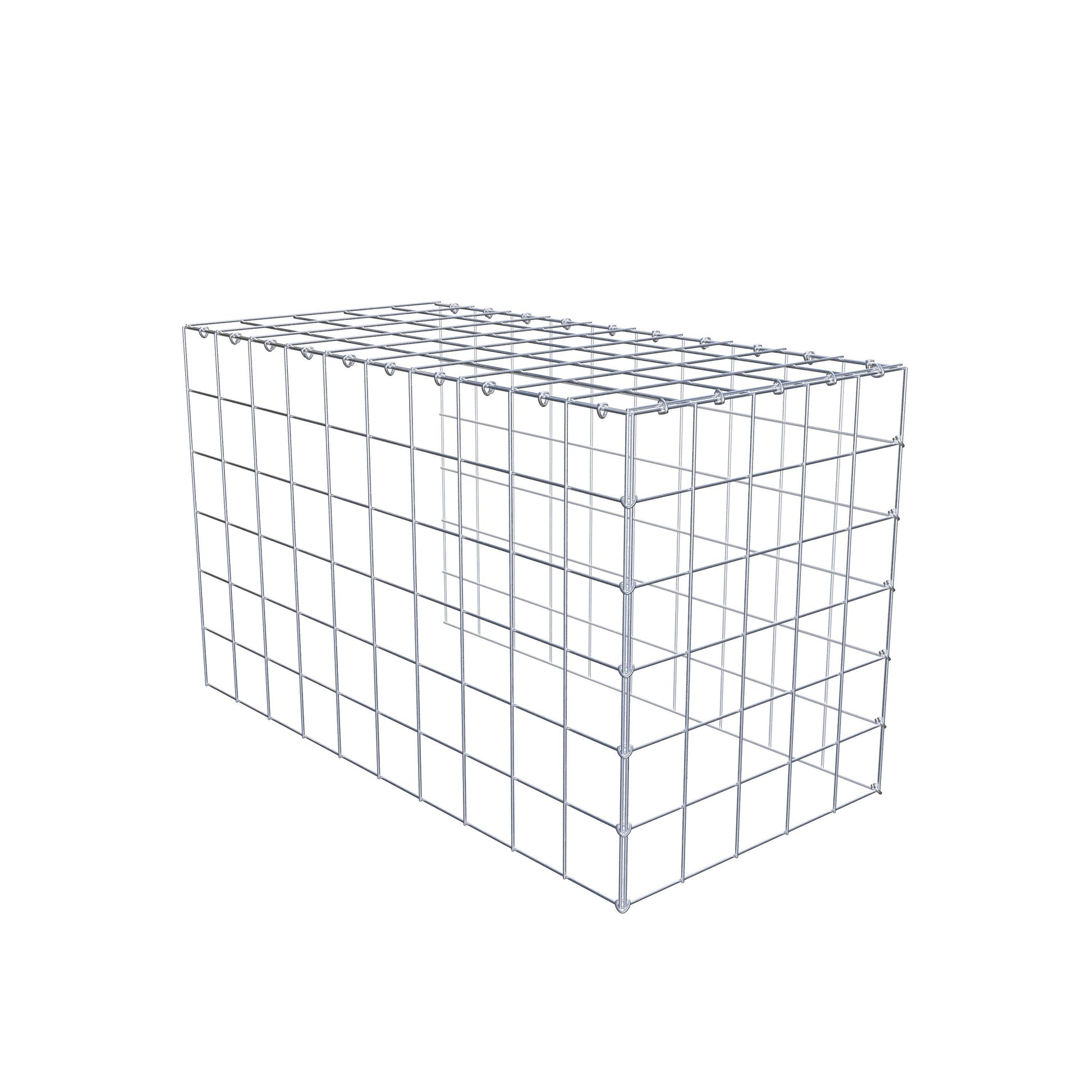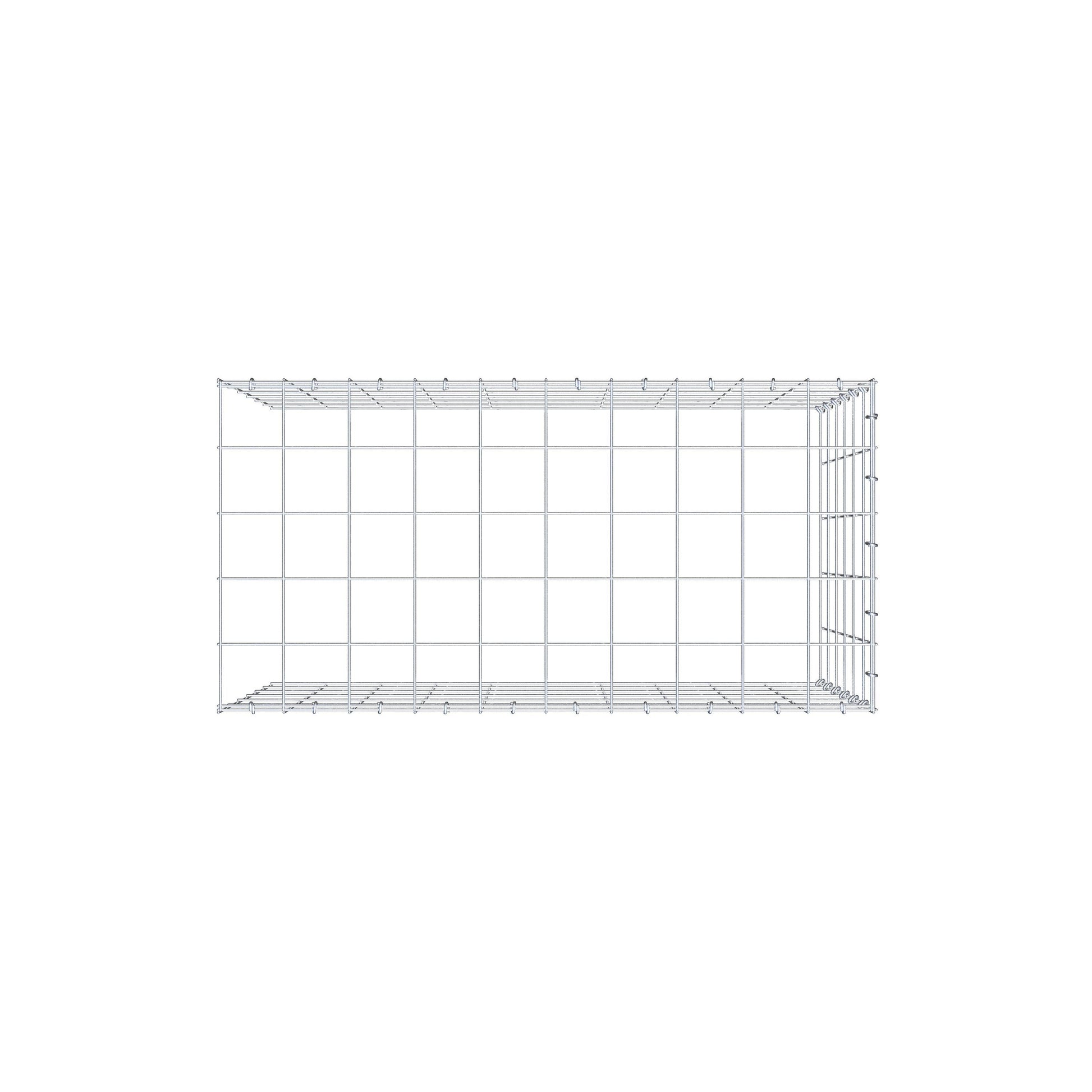 Este gabião não tem grade frontal e inferior. Isso permite que seu gabião cresça tanto em comprimento quanto em altura. Observe que o