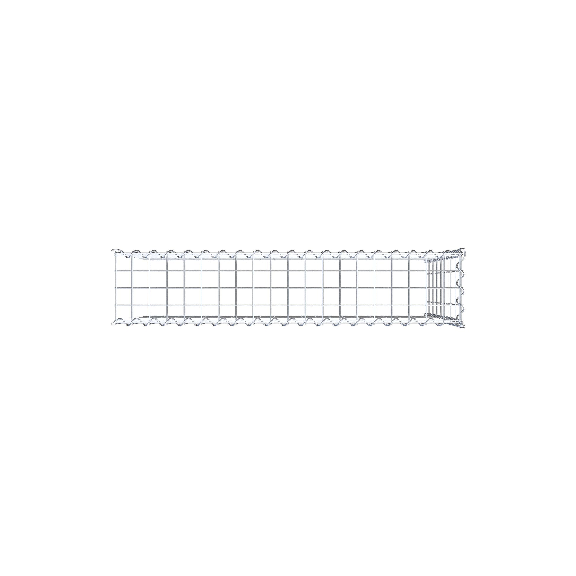 Este gabião não tem grade frontal e inferior. Isso permite que seu gabião cresça tanto em comprimento quanto em altura. Observe que o