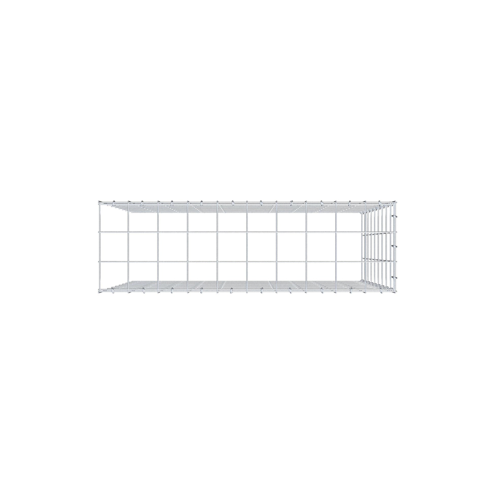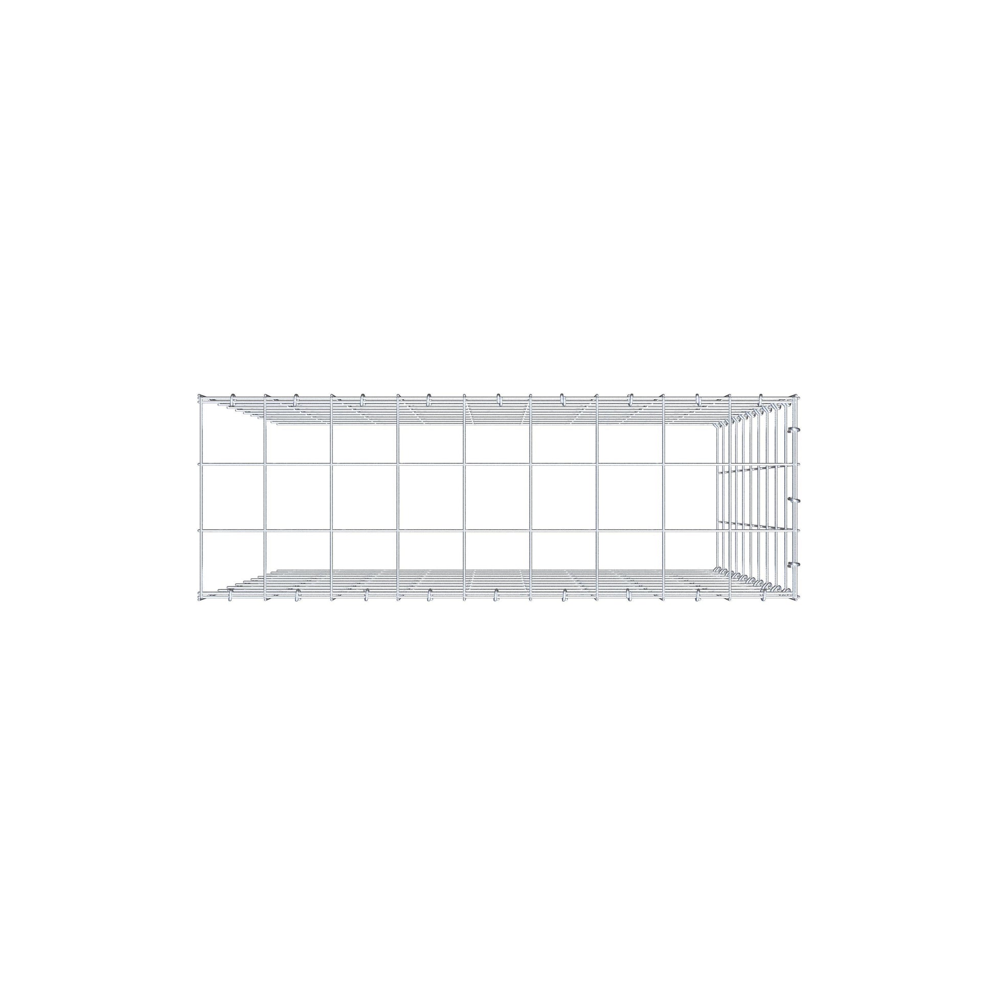 Este gabião não tem grade frontal e inferior. Isso permite que seu gabião cresça tanto em comprimento quanto em altura. Observe que o