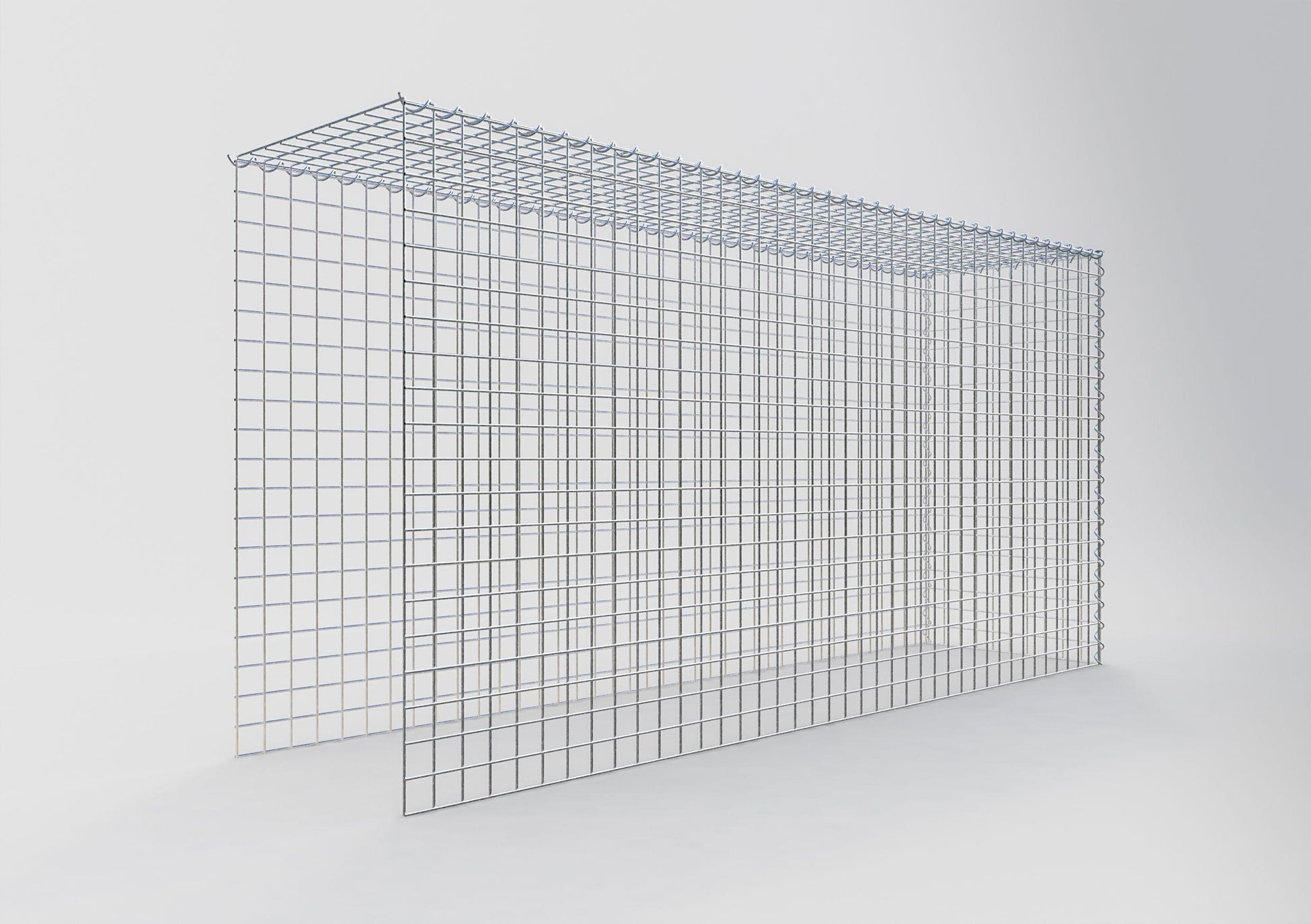 Este gabião não tem grade frontal e inferior. Isso permite que seu gabião cresça tanto em comprimento quanto em altura. Observe que o