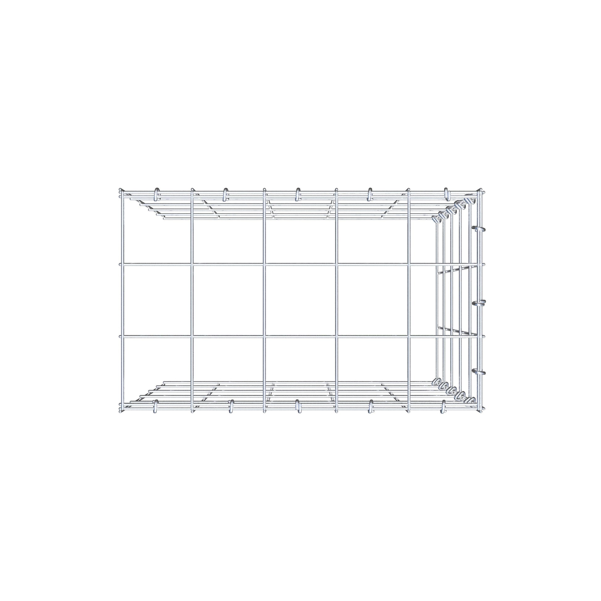 O gabião anexado tem a mesma profundidade que os gabiões ao lado e abaixo dele.