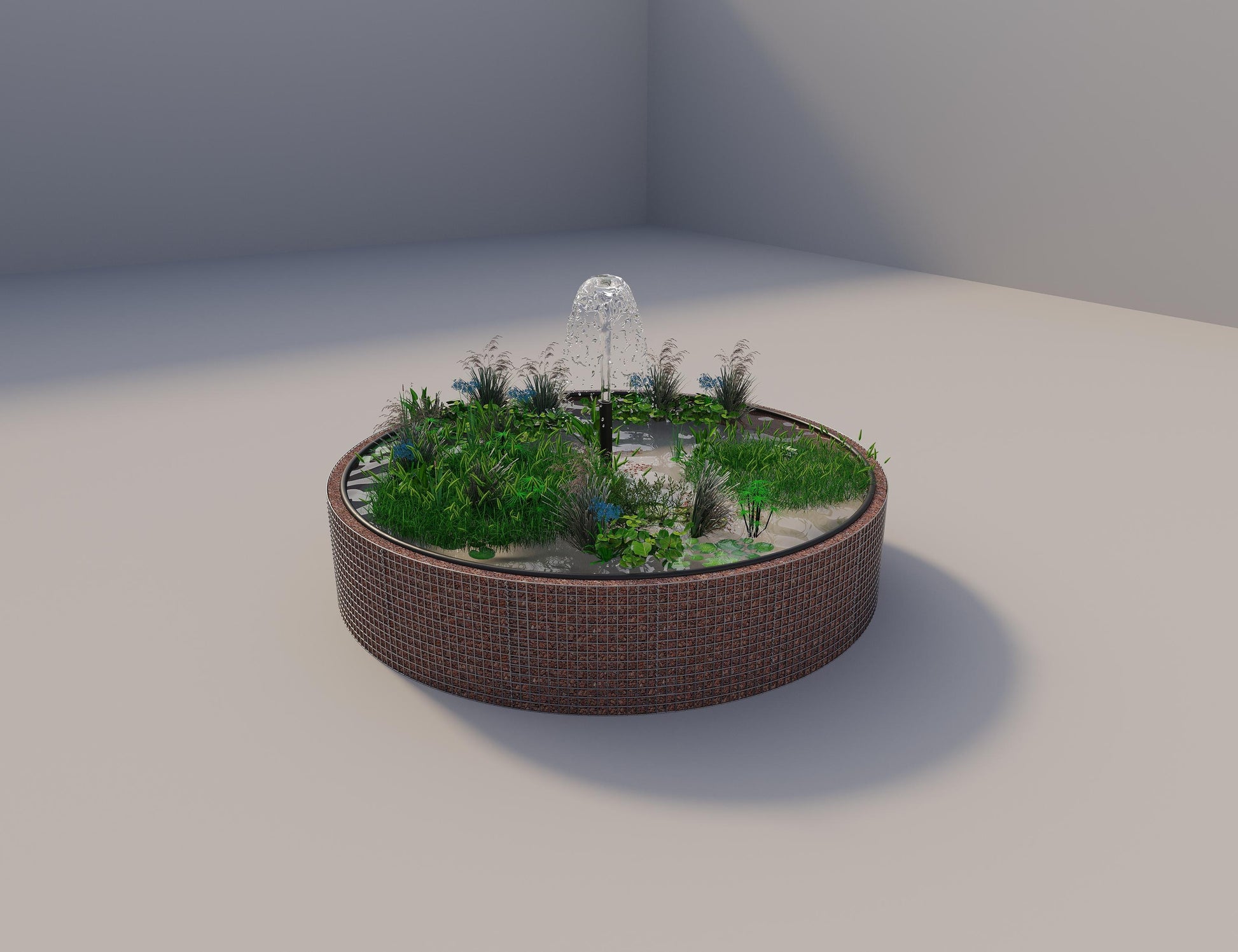 Lago elevado em gabião - Design redondo elegante com velo e revestimento do lago
